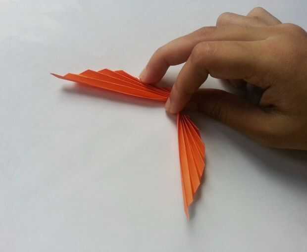 Mantenga el centro del papel doblado y aprieta suavemente para unir los dobleces del centro.