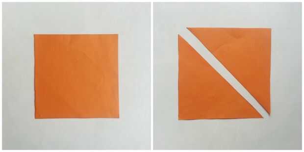Tomar un papel de tamaño cuadrado y corte diagonalmente para crear 2 triángulos.