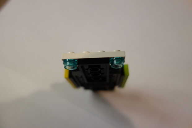 Colocar los 2 postes azul transparentes en la parte inferior de la placa blanca.