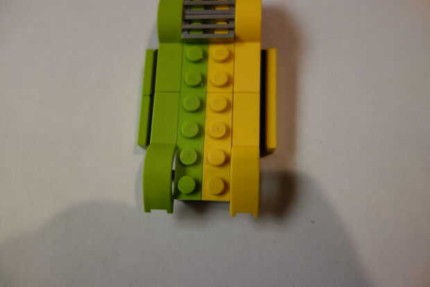 Al poner el 1 x 4 amarillo en el lado amarillo y el verde 1 x 4 en el lado verde.