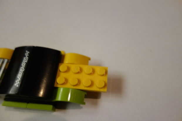 Poner la 2 x 4 amarillo justo detrás del parabrisas trasero.