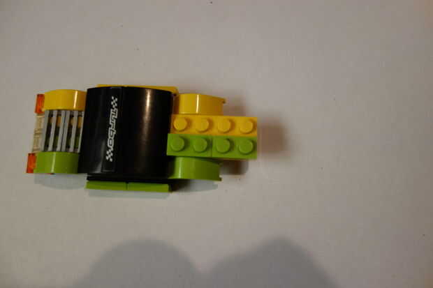Puso las 2 placas de 2 x 2 verdes en el lado verde del modelo.