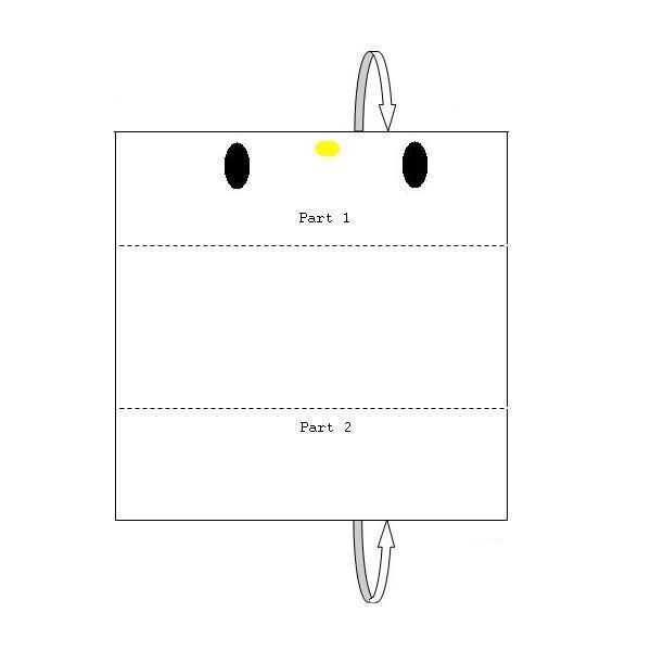 Hacer el rostro mirando hacia usted. Doble parte uno abajo de la línea que ha marcado en la parte posterior. Luego doblar la parte 2 en la línea que había marcado en la parte posterior. Parte 2 debe superponerse parte 1.