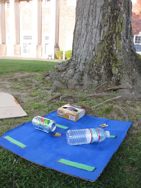 3. Fije las piezas de basura con cinta adhesiva o pegamento