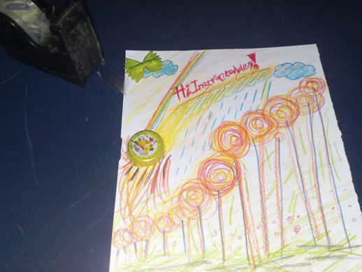 Perfecciona su pintura con sus materiales de desecho. Brillan de una puerta de refresco sin alcohol en la parte superior y los macarrones de color. Recuerda que no es importante que brilla sus materiales con una cinta, sucia! Resplandor mi cinta de herida en la esquina de papel. No tire su membrana! Lo necesitamos en step6.
