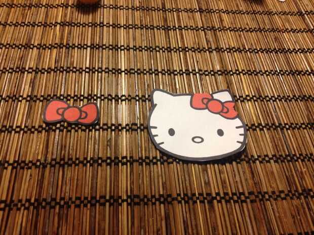Empezar por imprimir las dos plantillas de Hello Kitty (búsqueda de plantilla de hello kitty en google imágenes).