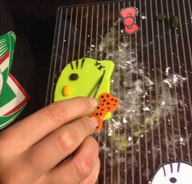 Agregar puntadas (xxx) a la cara de HK con el palillo de dientes mojado en colorante negro.