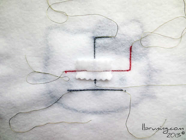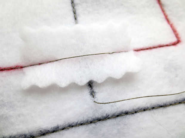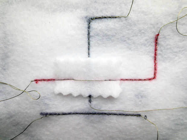 Usando su máquina de coser o a mano, coser los rastros electrónicos en el fieltro.