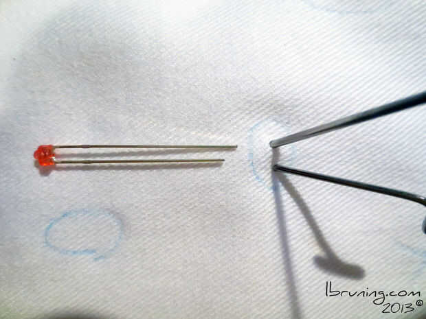 Inserte el cable positivo del LED hacia el rastro positivo.