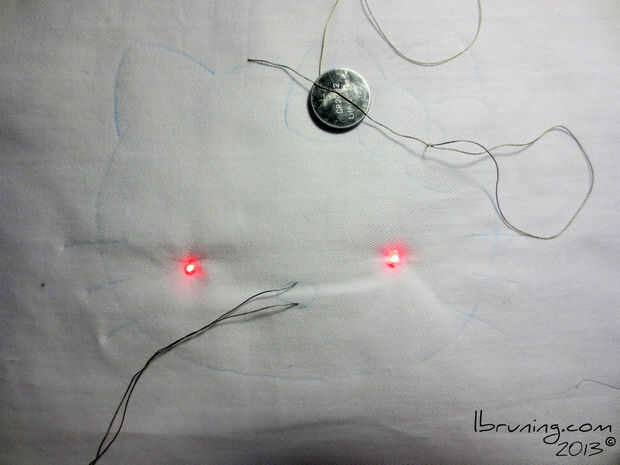 Utilice la batería CR2032 para conectar a las huellas positivas y negativas en el arco de Hello Kitty