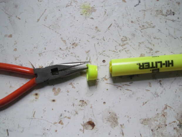 -Retire la base de la Hi - Liter con alicates de punta -Retire el paquete de tinta -Cortar todos pero sobre mitad de una pulgada del pack de tinta -Tomar una tira de cinta adhesiva y coloque sobre el borde cortado del paquete de tinta -Vuelva a insertar el paquete de tinta