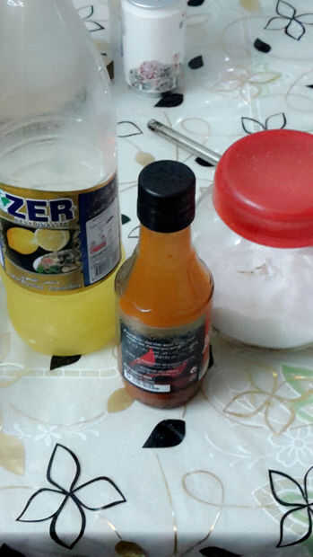 necesita un jugo de limón o simplemente puede tomar el limón y siquiz y necesita sal y también caliente salsa, si te gusta caliente puede añadir una salsa caliente o si deslike usted puede saltarla, es un poco como una salsa para el maíz