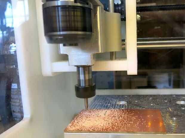El Othermill desciende dramáticamente a la superficie del material y, con un zumbido agradable, empezar a cortar sus rastros.