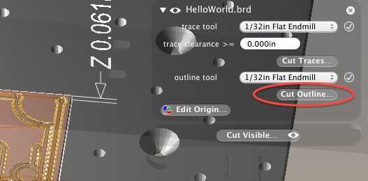 Si utiliza un PCB en blanco que es más grande que el tablero terminado, puede dejar el Othermill continuar cortando el contorno del tablero después de que los agujeros se perforan.