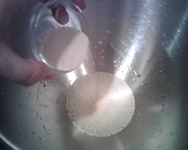 Vierta el agua ahorrar 1/3 de taza a la que se agrega la levadura.