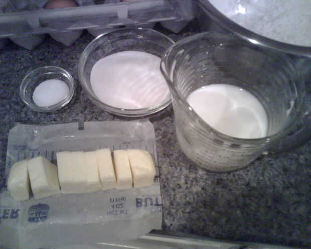 poner mantequilla restante, azúcar, sal y leche en envase abierto seguro de microondas