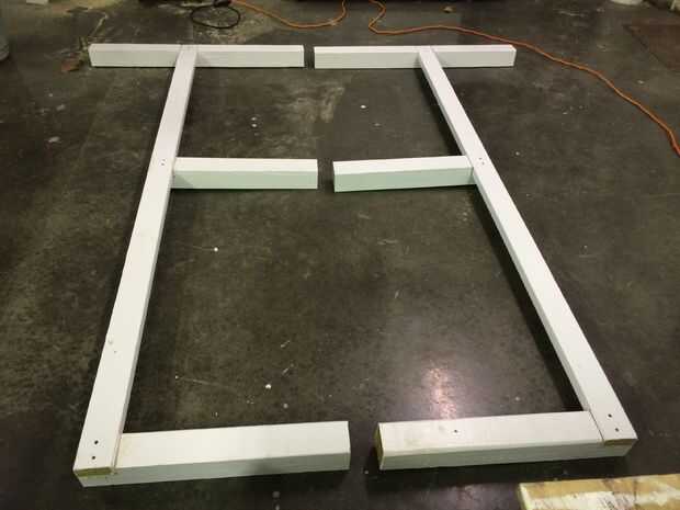Ha reunido a las afueras del Banco. Ver cómo los dos es queden al ras con el 4 por es. Todas las uniones fueron ensambladas con líquido los clavos y los tornillos exteriores. fueron 2 1/2 pulgadas de largo. Las cabezas son la forma poco estrellas. La caja de los tornillos vienen en tener un poco de estrella incluido. El color del tornillo es verde. Asegúrese de que ponerlos juntos enfrente uno del otro. Si haces lo mismo, una de las secciones de la pierna será al revés.