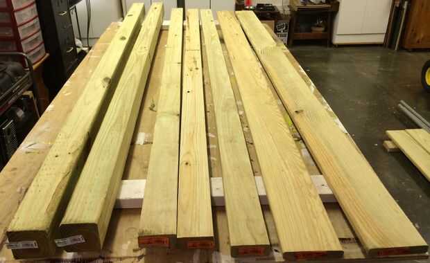 Cuando estoy construyendo algo al aire libre siempre utilizar materiales de construcción al aire libre, por eso se hacen. Pagamos más pero merece la pena. Aquí usamos madera tratada a presión que protege contra el clima y los insectos. Estoy utilizando 4 x 4, 2 x 4 y 5/4 x placas de cubierta 6. Me gusta con la tarima tableros para mis estanterías y mesas porque tienen un aspecto acabado y un montón lo suficientemente fuerte. Preparar y pintar antes de hacer cualquier cosa con ellos. Me tome el tiempo para hacerlo porque es más fácil pintar madera plana de elementos construidos.