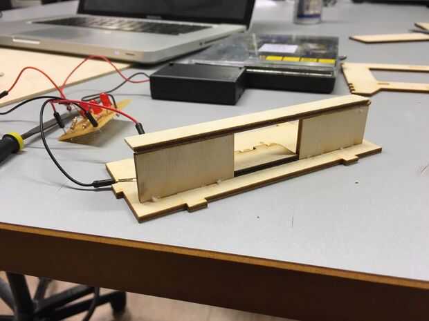 Doormiddel van wat resthout heb ik een ondersteund marco gemaakt waar de drukschakelaar op vastgelijmd gaat worden. Wees creatief en bedenk een manier om de drukschakelaar op zijn plek te houden.