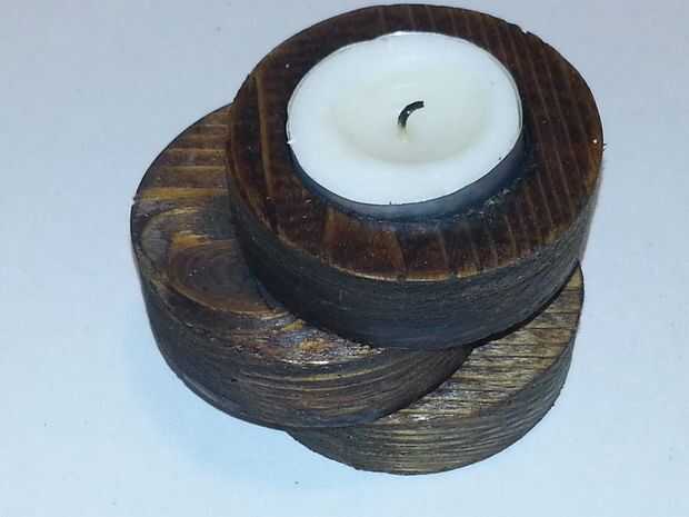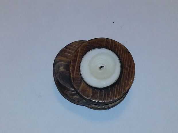 Este es un proyecto fresco para hacer. Es una vela de té de agujeros. Me estaba haciendo un proyecto usando un agujero vio y corta un manojo de mitad en amplios círculos. Decidí lijar pegamento ellos juntos les mancha y convertir algunos de ellos en un sostenedor de vela de té. Velas de té son 1.5 pulgadas para que los círculos usted recortar deben ser por lo menos grandes así que usted puede perforar un orificio para la vela de té en. Usted puede hacer este taller si crees que no voy a altura que desea para asegurarse de que nunca podrían inclinar. Nunca desatienda la vela. También sería bueno agregar una capa transparente. Un conjunto de ellos también es buena idea.