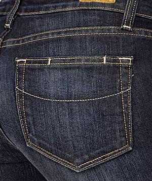 Coloque el parche de jean dentro de cada bolsillo efectuado. Lado adhesivo debe mirar hacia fuera de la pared lateral del bolsillo del lado del cuerpo.