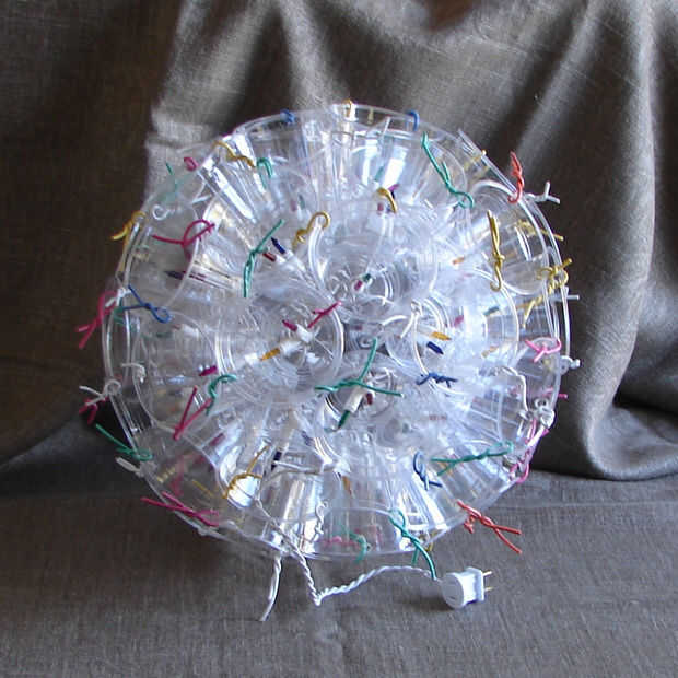 Como primos ninguno-derriten Sparkleball y Sparkleball Mini, Sparkleball Solar es una bola de luz hecho a mano hecha de vasos de plástico y luces de Navidad. La gran diferencia: las luces son pequeños carámbanos alimentados por un panel solar.  Dispu