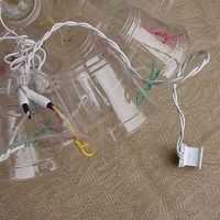 Para Halloween he decidido reutilizar un viejo sparkleball. Tomó aparte, lava las tazas y consiguió suministros listo.taladrola grapadora alicate + grapaspintura de acrílico negro150 luces naranja y negrasziptie + gancho para colgar50 reciclado plást