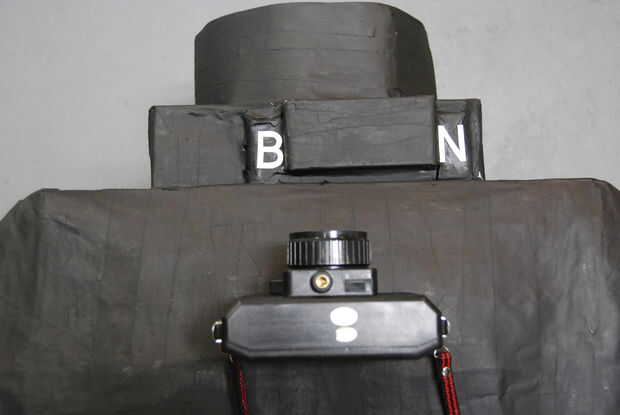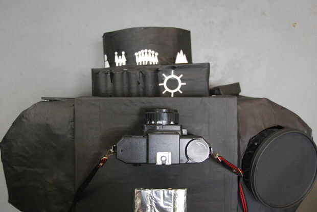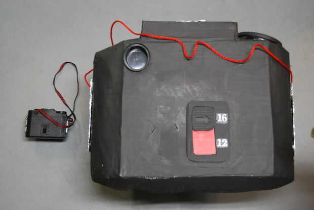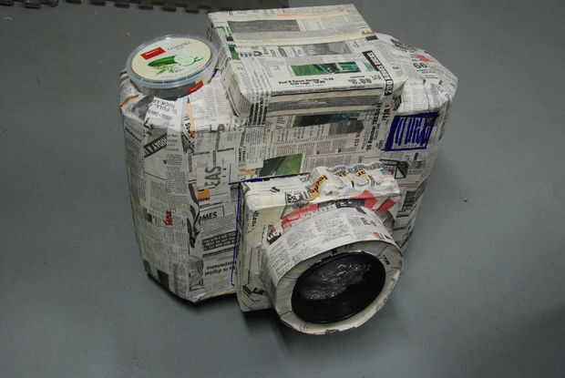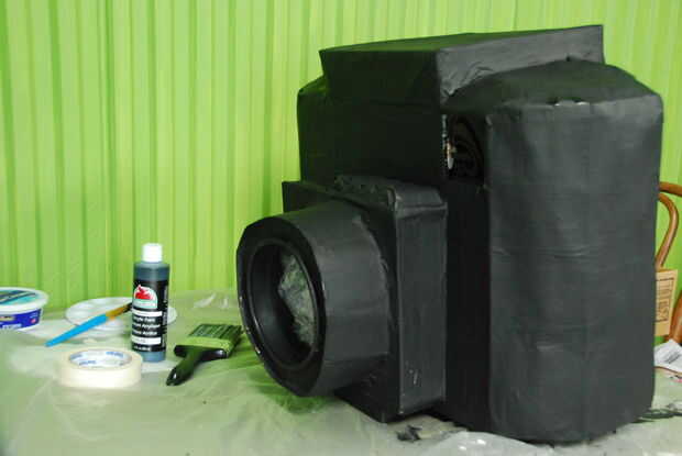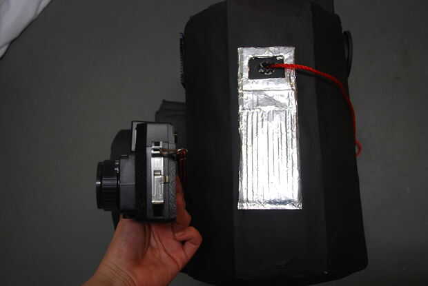 21. Cubra con 2 o más capas de papel maché. Este es donde he añadido el obturador, usando un cartón doblado y cubriendo con papel maché.