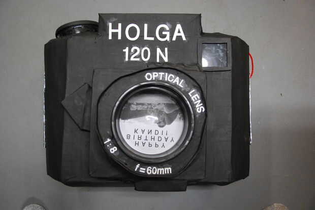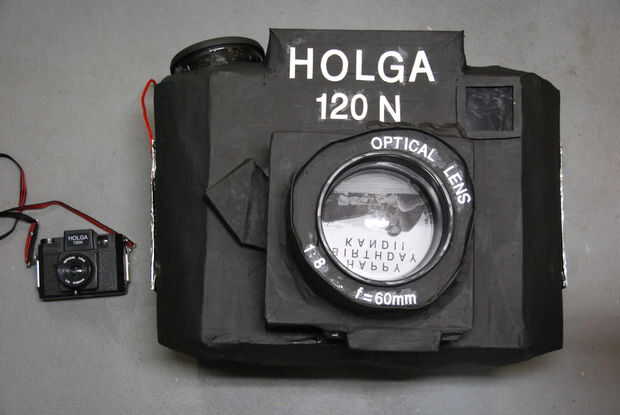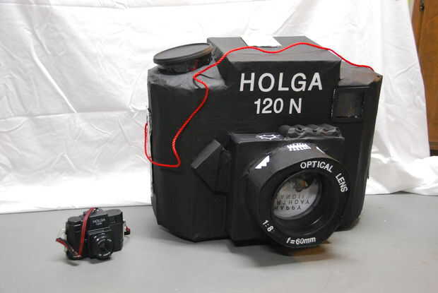 12. para el frente del lente de la Holga fijada, encontré una caja que era del tamaño correcto, luego utiliza un cartón delgado para formar en un círculo. Un trabajo rápido de la cinta une las piezas por el momento.