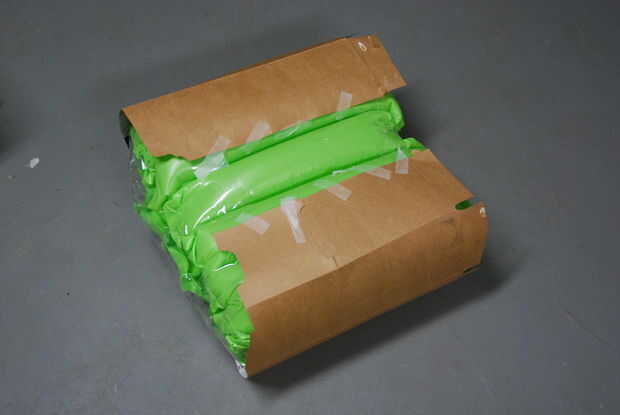 3. infla aproximadamente en la mitad, dobla en tercios, luego utiliza cinta de embalaje para garantizar en forma rectangular para el cuerpo de la cámara
