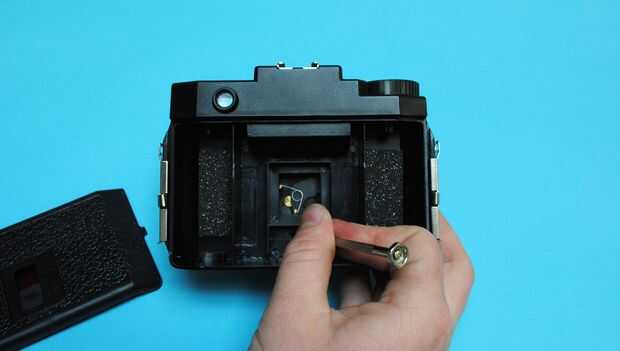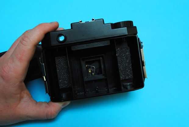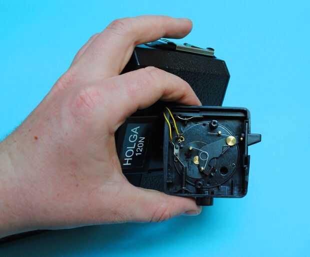 Primer paso es abrir la holga y localice los tornillos (ver foto para ubicaciones de los tornillos). Una vez que encuentre los tornillos, aflójelas y caerá la primera parte de la lente.