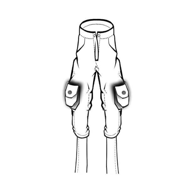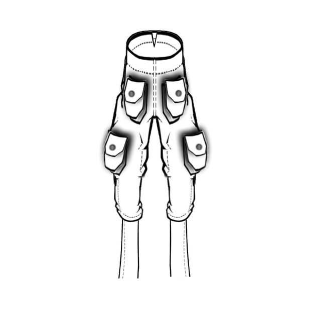 2. Seleccione las capas duplicadas de la mitad superior y mitad inferior (vista de la vista y la espalda frontal) de la plantilla de los pantalones. Cultivos a/borrar las piernas en una las capas duplicadas. En el otro duplicado de la capa de las bragas (vista trasera) mediante el cultivo de la varita mágica alrededor de los bolsillos traseros. Hacer una copia de esa capa y añadir un efecto de sombra paralela a él entonces duplicar dos veces. Tomar una de las capas para el pantalón y pieza juntos para agregar el efecto bombacho arriba de la rodilla y entre los bolsillos de la plantilla original. Utilizando la herramienta Mover vas a colocar los duplicados de los bolsillos que sobresalen en la parte delantera de los pantalones diagonal a la rodilla. También colocar una de las copias de los bolsillos en la parte superior el real bolsillo trasero en la plantilla para crear más dimensión con el diseño.