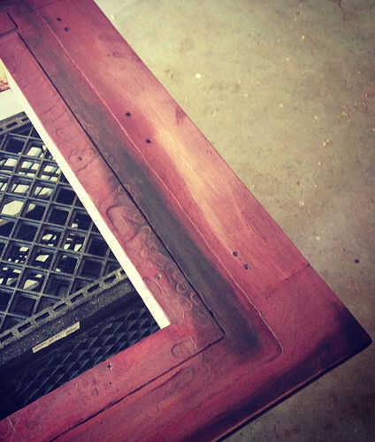 Arenas selectivamente secciones detrás de la madera; no demasiado, no quiero ir todo el camino a través a la madera desnuda, sólo aclarar manchas de la mancha.