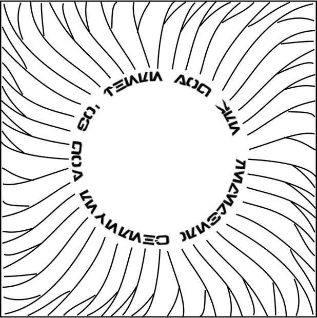 En primer lugar, preparar las ilustraciones originales. En el caso de los paneles "difusos", el arte consistía en texto (usando una fuente de Star Wars freeware) envuelve al camino (un círculo), y un conjunto de trazados ornamentales spline clonado varias veces para llenar la cáscara exterior.