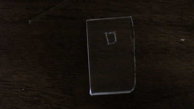Ahora necesitas un trozo de plástico transparente. Usted puede obtenerlo de una botella de plástico un recipiente de frutas o una caja de CD. Usando un cuchillo o un clip, rayar una retícula o una plaza en el plástico.