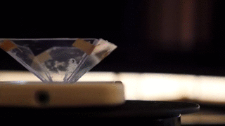 Este es un truco barato pero eficaz que utiliza la ayuda de una video - juega la imagen de cuatro lados diferentes de la pantalla del teléfono. Este efecto también se llama a fantasma de la pimienta y participó en la infame aparición de Tupac Shakur en un concierto de Dr. Dre.