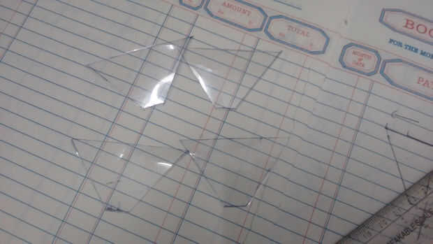 Para un holograma necesitamos cortar una pirámide de cristal de la ventana o plástico, tamaños se indicanPaso 1:Paso 2:
