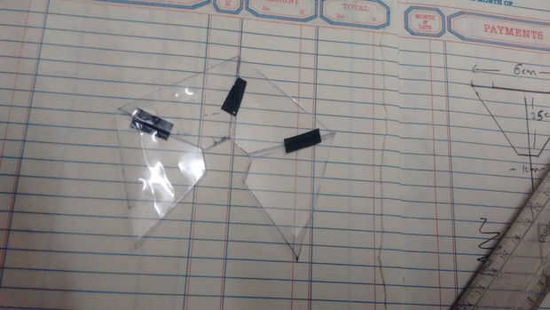 Para un holograma necesitamos cortar una pirámide de cristal de la ventana o plástico, tamaños se indicanPaso 1:Paso 2: