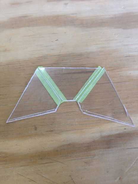 En este punto procedemos a unir las caras con pequeños trozos de cinta adhesiva en los bordes de las mismas.