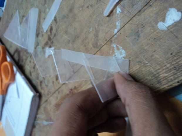 Con pegamento caliente o pegamento fuerte unir las piezas. Asegúrese de que el ángulo entre el pedazo de pie vertical y la pantalla debe ser de 45 grados para cada pedazo.
