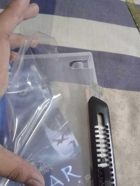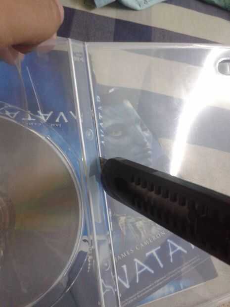2. Cortar la cubierta de plástico encima de la caja del CD