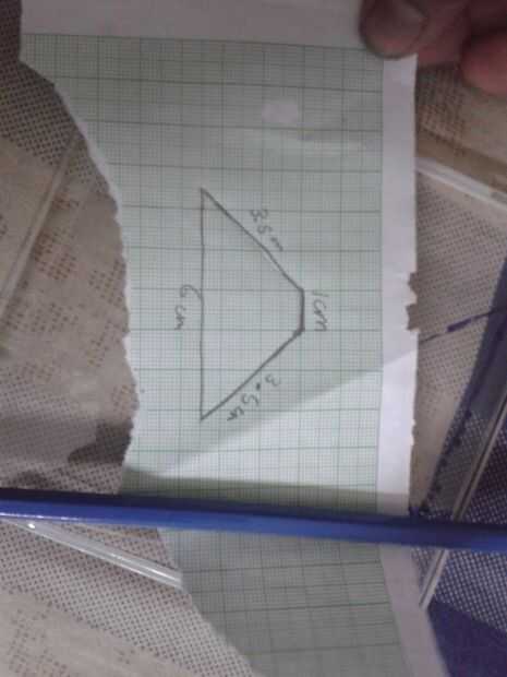 Nota: En las imágenes de arriba dibujé los lados para ser 3.5 cm, pero en cambio la altura entre los lados paralelos 6 cm y 1 cm debe ser de 3,5 cm