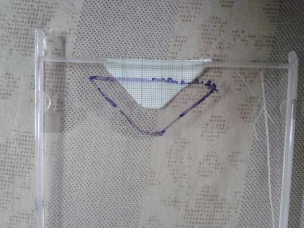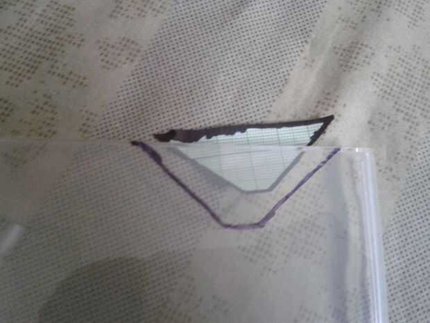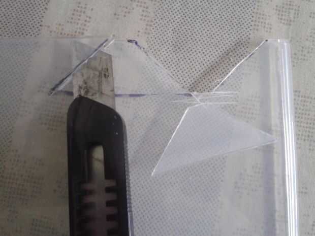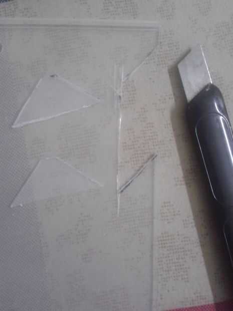 Usando el cuchillo o el cortador de cristal cortado por las líneas de marcador y como resultado obtendrá 4 trapecios.