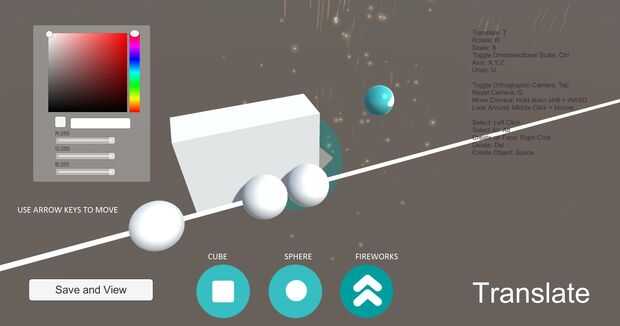 Abrir el juego en pantalla y mueva el objeto color. Movimiento hacia arriba, abajo, izquierda y derecha debe girar objetos, mover adelante y hacia atrás debe acercar/alejar.