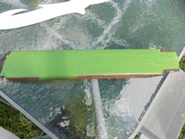 Ahora tenemos un patrón.  Cubiertas de acero con cinta de pintor, coloque la plantilla sobre la cubierta de acero y traza alrededor de él con un lápiz.
