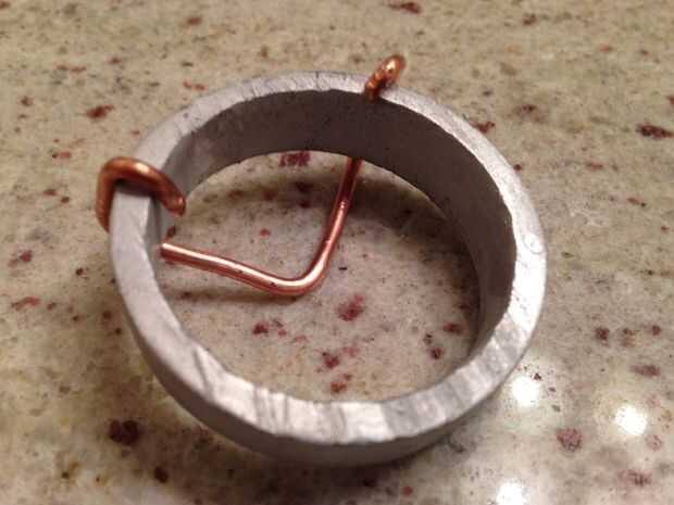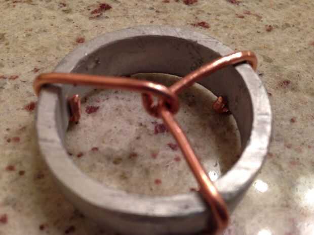Tomar la pipa pintada y alambre de cobre grueso y doblar como se muestra en la imagen. Yo bender el precio todo primero antes de cortarlo. Entonces, utilicé las sobras para hacer el otro precio que se ajusta a los otros. Se pegar cosas sobre esto más adelante.