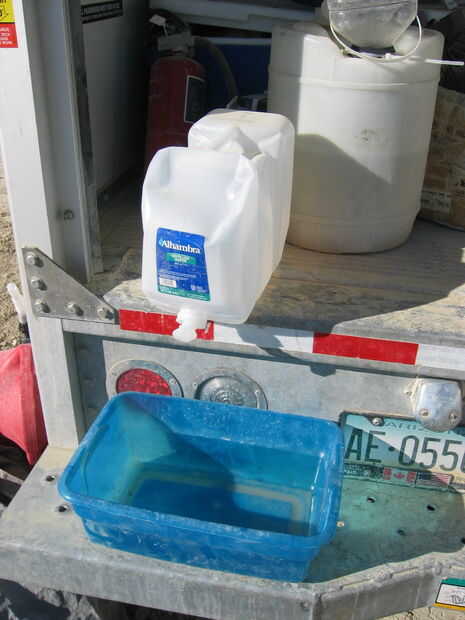 Instalado un fregadero con una de sus jarras de agua y un recipiente de plástico. Un par de tinas extras y se puede lavar, enjuague, incluso blanquear sus platos.