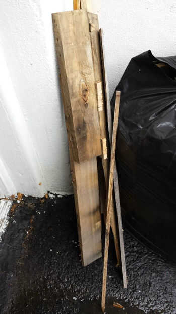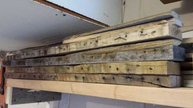 Cuando romper un palet, intento primero utilice un prybar para quitar toda la longitud de la Junta para obtener mucho de ella como pueda. Esto funciona mejor con las plataformas más recientes como los clavos no son oxidados en él. Me gustan las paletas que se resistieron un poco más (no podridas) darle a la madera algunos caracteres y defectos intencionales. Esto, sin embargo, causa algunos problemas con la eliminación de las juntas en piezas enteras. En estos casos utilizar la sierra (jigsaw, sierra circular o sierra de mano) para cortar las tablas a las camillas como sea posible. Para este proyecto esto produce piezas que son más de lo suficiente.