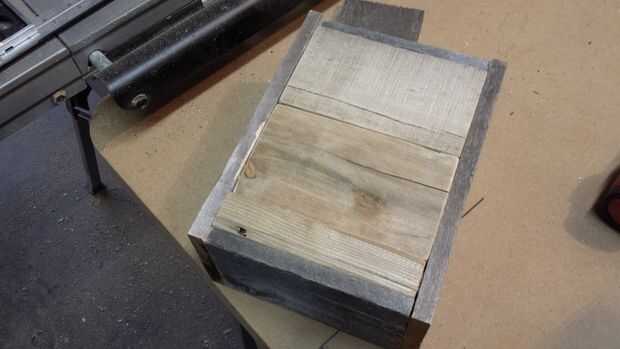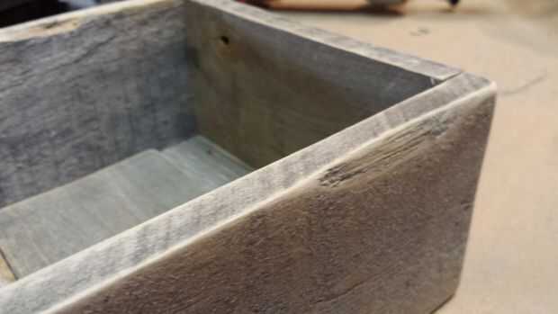 Luego pasó la caja completa de todas las caras expuestas y los bordes y prestado más atención a algunas áreas para que se vea bien gastado. Usé papel de lija de grano 80 para desbaste a. No sentía la necesidad de ir cualquier más suaves, como hizo un trabajo lo suficientemente fino para eliminar todos los bordes afilados y las astillas. Libertad con este paso y la arena a determinadas zonas como le parezca a algún personaje de ciertos golpes y esquinas.