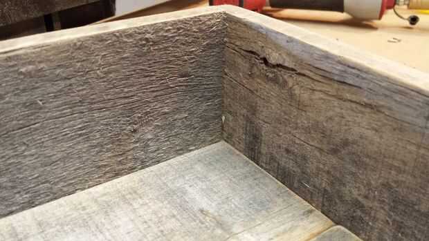 Lijar los inferiores en todos los bordes para darle un aspecto más desgastado y quitar algunas astillas antes de colocar en la parte inferior del marco. Manejé unos clavos en inferiores para garantizar en su lugar.